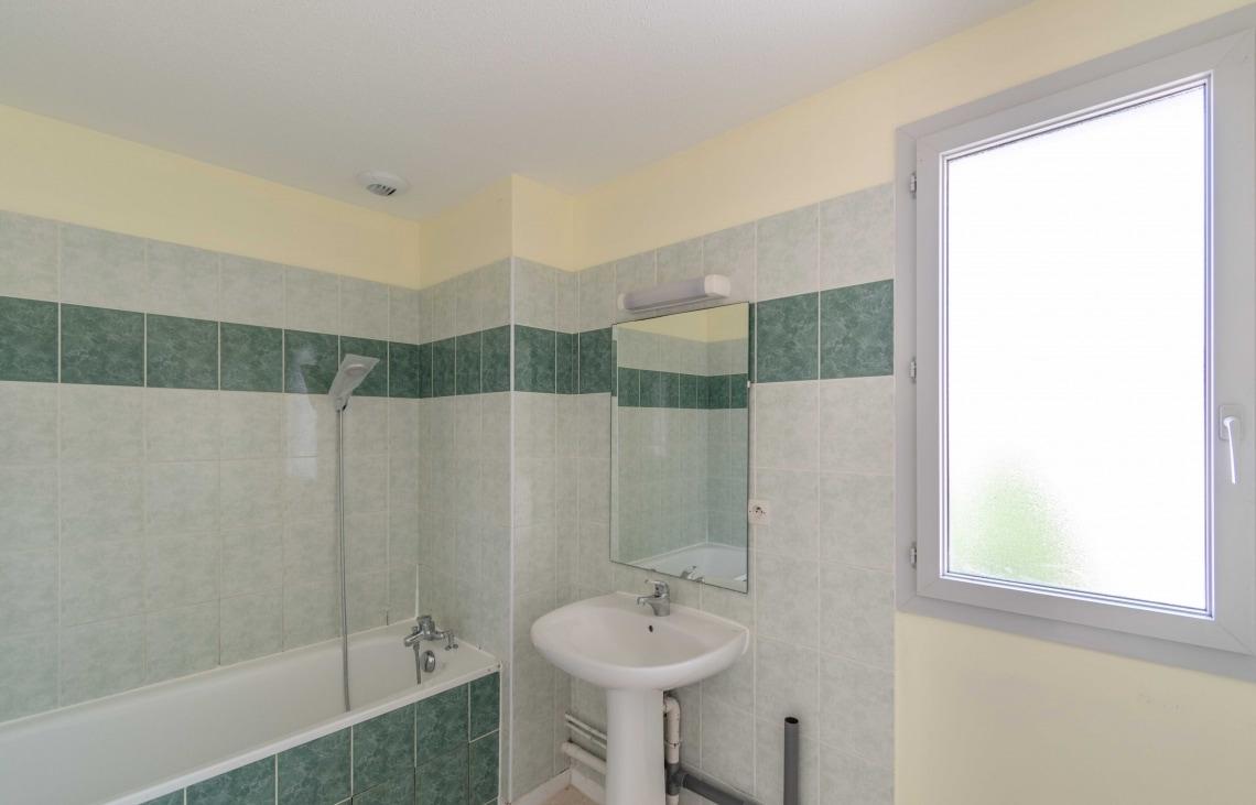 Ce T3 se compose d’un séjour donnant sur une terrasse de 7m², une cuisine séparée (ouvrable sur le séjour) à équiper, wc et à l’étage, 2 chambres avec placards, salle de bain avec fenêtre. Un garage privatif fermé vient compléter le tout.